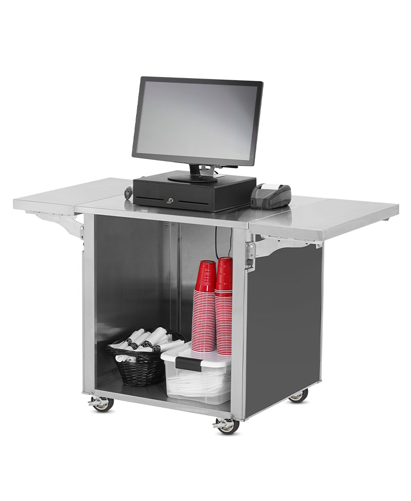 A mobile, durable, and fully customizable cashier hub designed to streamline serving lines, speed lines, K-12 school food service, and other operations.