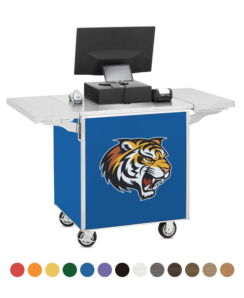 A mobile, durable, and fully customizable cashier hub designed to streamline serving lines, speed lines, K-12 school food service, and other operations.