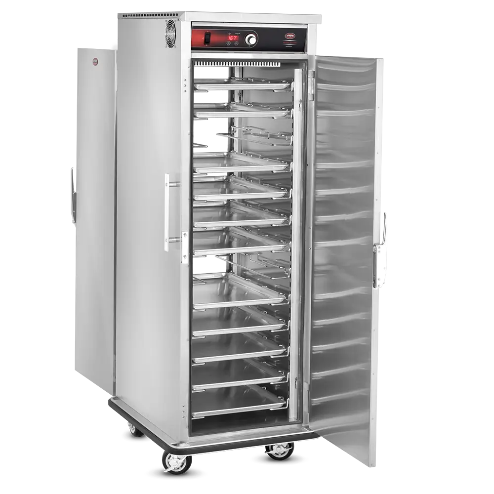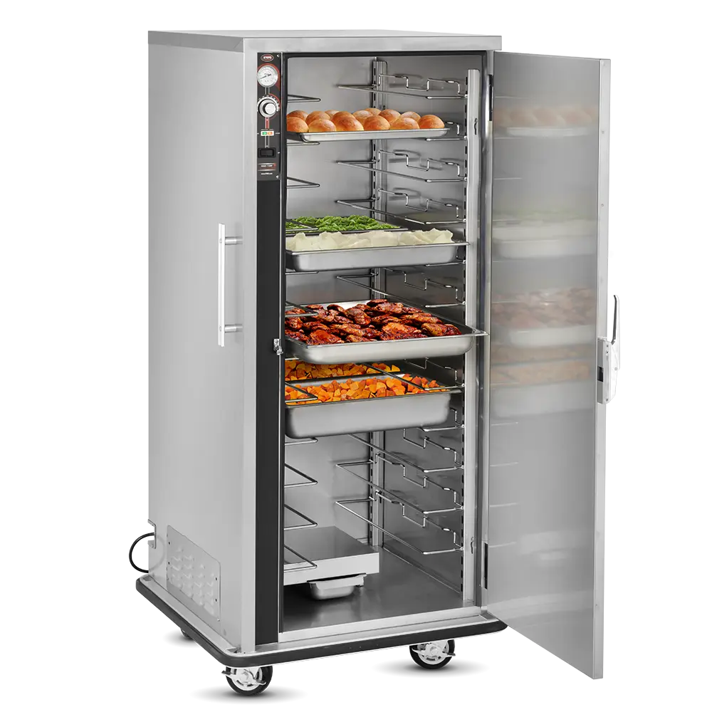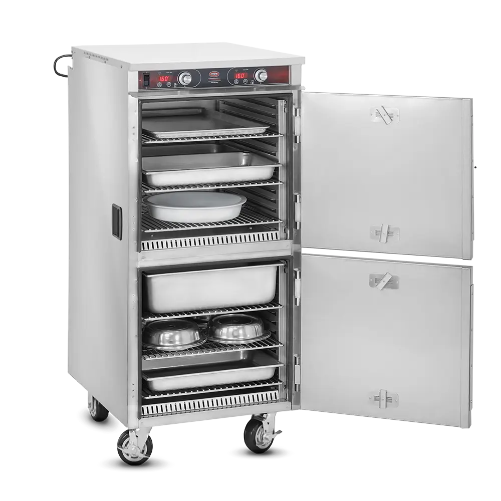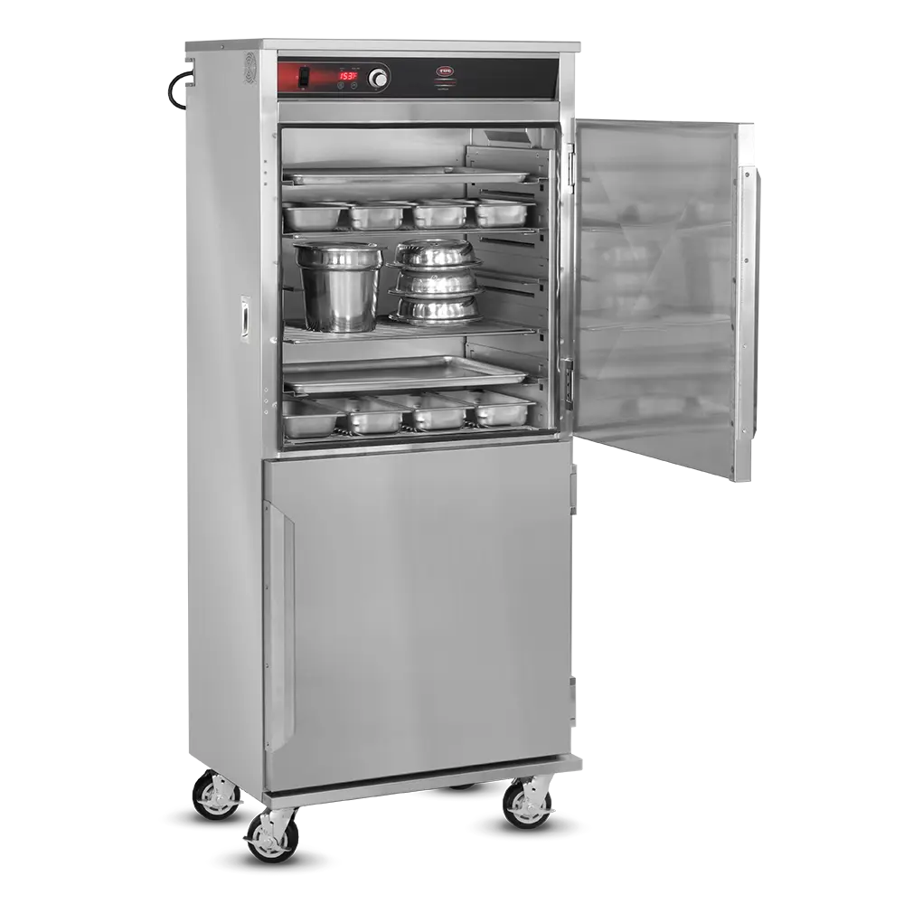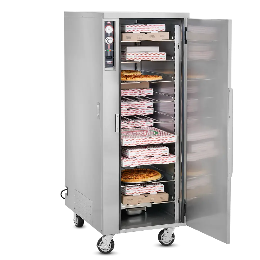Heated Holding is pretty simple in idea but can be much more complex in execution. Commercial foodservice operators rely on heated holding equipment to keep their product at a safe service temperature varying from short term staging to prolonged periods – sometimes hours at a time, while attempting to maintain “just-cooked” quality. The types of food product and storage vessels are as diverse as the industry itself and no other company offers the range of options in this category that Food Warming Equipment does. Many manufacturers are content with offering 1-10 temp scales, but every cabinet FWE makes includes a full range actual temperature thermostat, to give you full control over your product. Most of our cabinets are fully insulated to conserve energy and extend holding times and made from durable stainless steel, inside and out, rather than cheaper aluminum options. No matter the product or space available, we have the best option to fit your unique operation.
