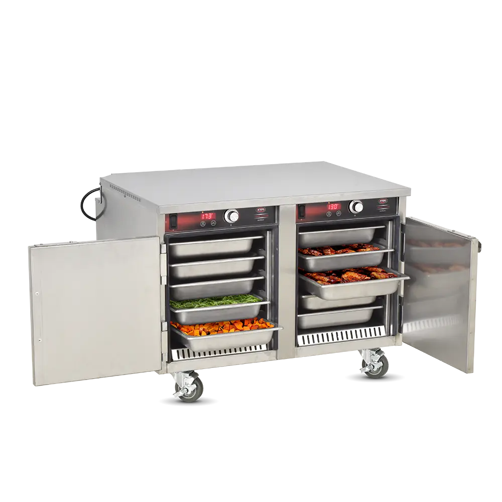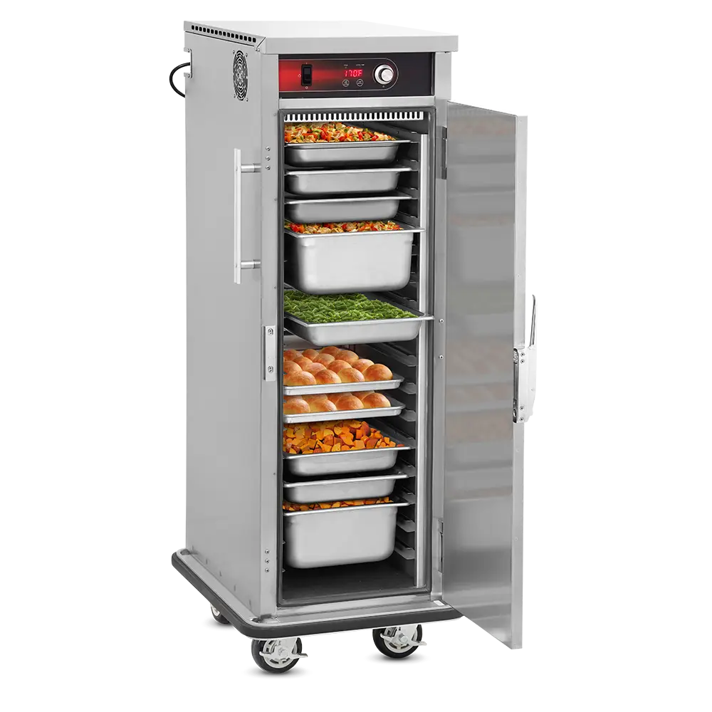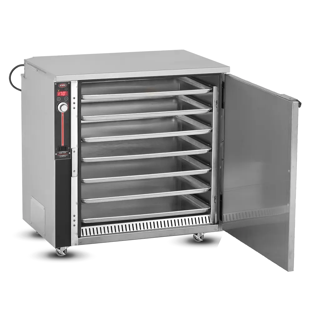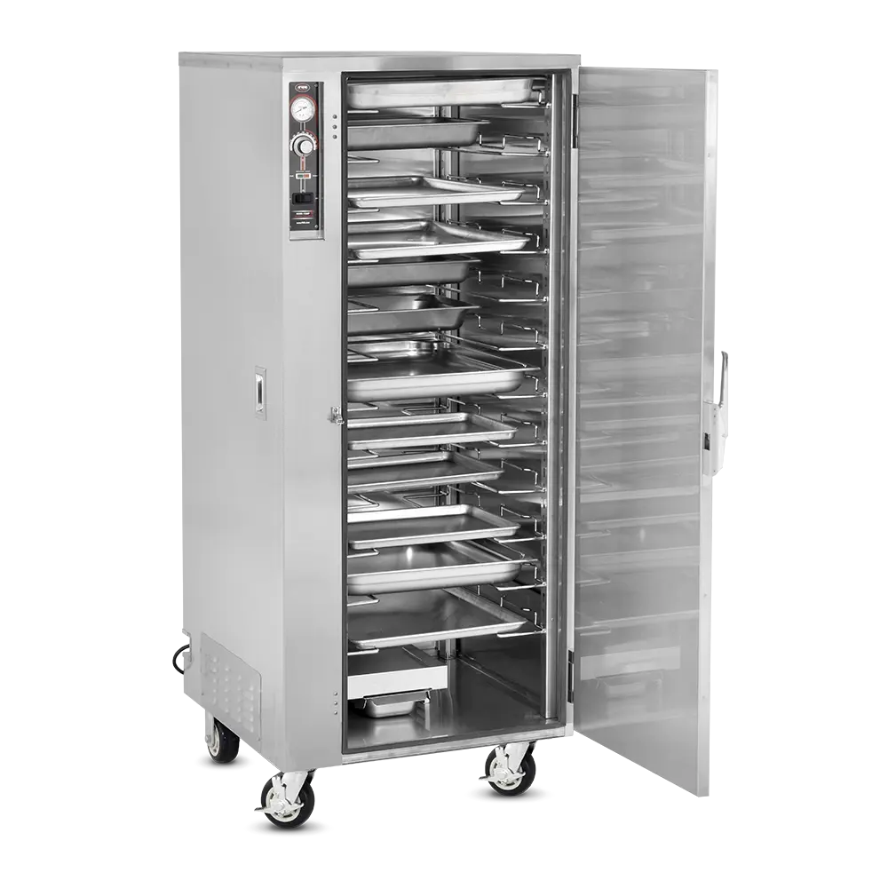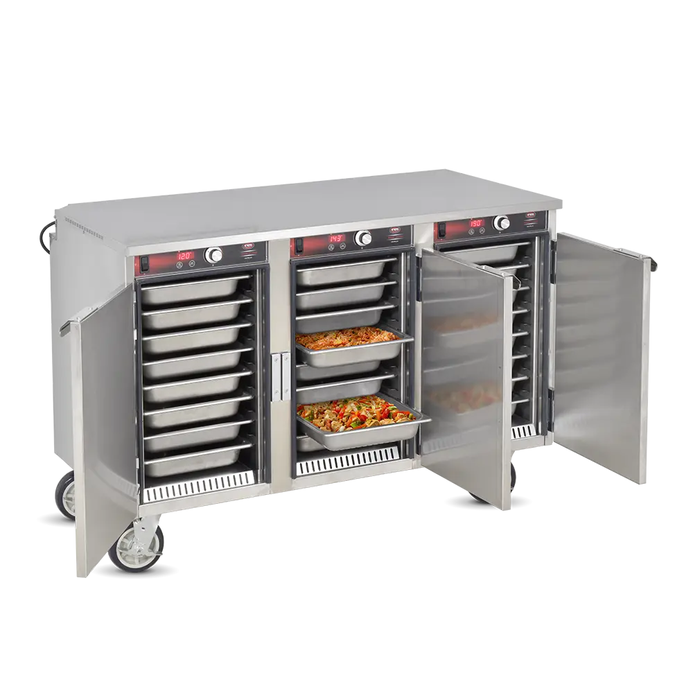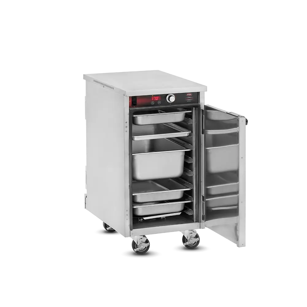 Heated Holding is pretty simple in idea but can be much more complex in execution. Commercial foodservice operators rely on heated holding equipment to keep their product at a safe service temperature varying from short term staging to prolonged periods – sometimes hours at a time, while attempting to maintain “just-cooked” quality. The types of food product and storage vessels are as diverse as the industry itself and no other company offers the range of options in this category that Food Warming Equipment does. Many manufacturers are content with offering 1-10 temp scales, but every cabinet FWE makes includes a full range actual temperature thermostat, to give you full control over your product. Most of our cabinets are fully insulated to conserve energy and extend holding times and made from durable stainless steel, inside and out, rather than cheaper aluminum options. No matter the product or space available, we have the best option to fit your unique operation.